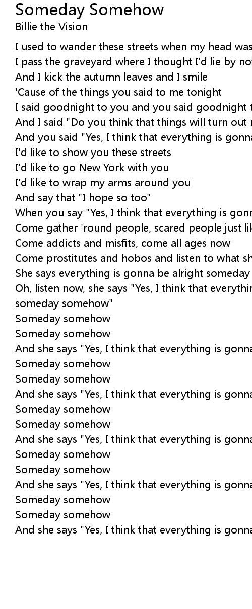When you say "Yes, I think that everything is gonna be alright someday somehow" |