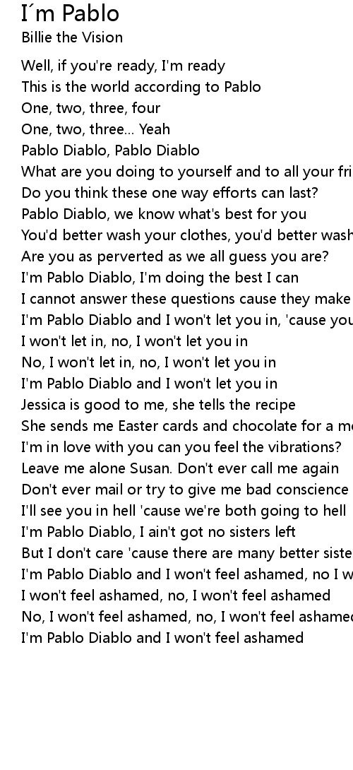 I'm Pablo Diablo and I won't feel ashamed, no I won't feel ashamed |