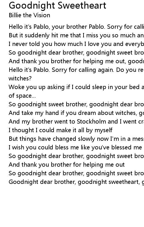 Goodnight dear brother, goodnight sweetheart, goodnight |