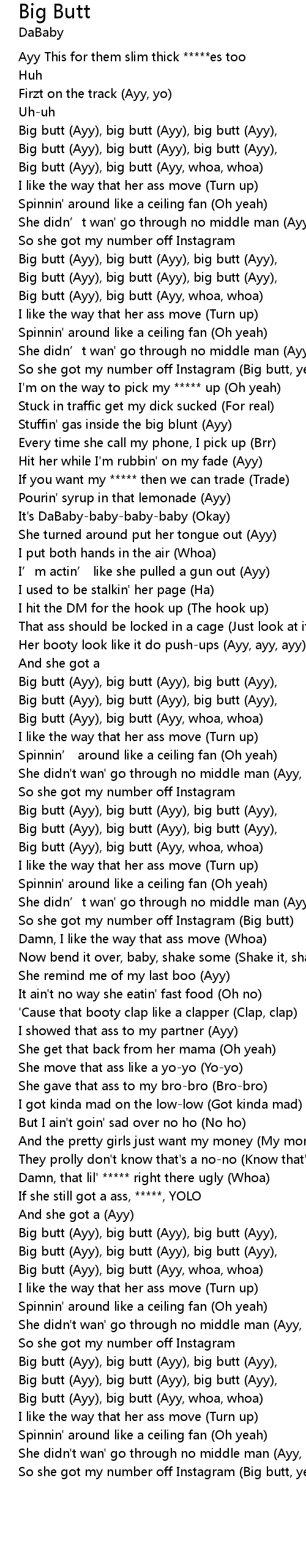| [02:10.45] | Big butt (Ayy), big butt (Ayy), big butt (Ayy), |