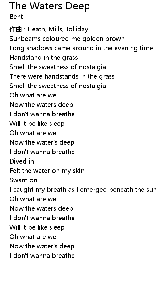 | Now the water' s deep | |
