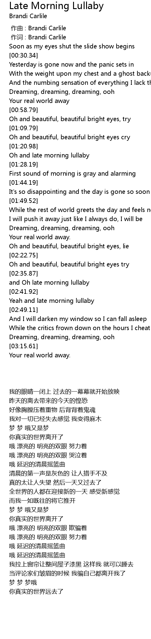 | [00:00.00] | 作曲 : Brandi Carlile |