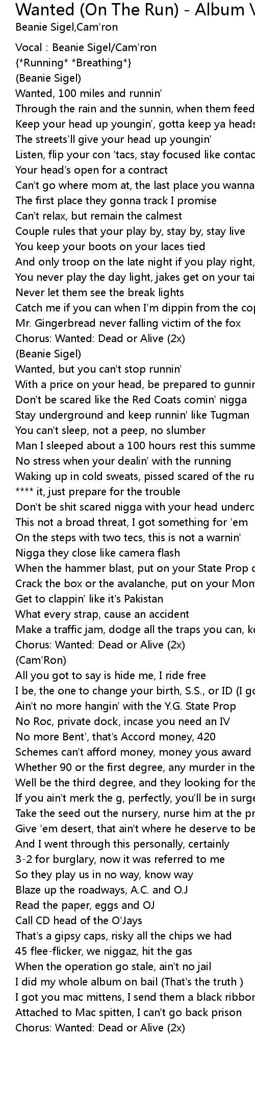 | Chorus: Wanted: Dead or Alive (2x) |