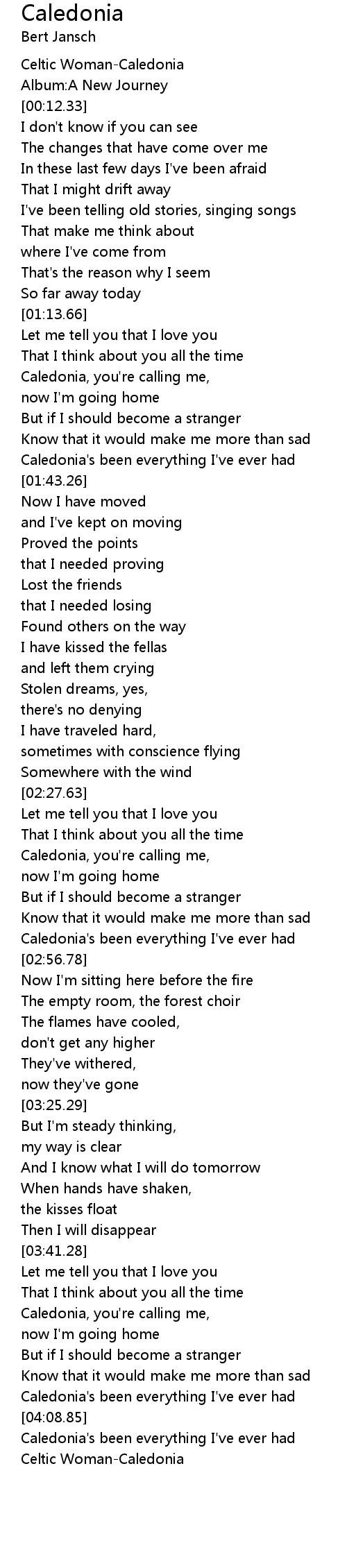 Caledonia's been everything I've ever had |