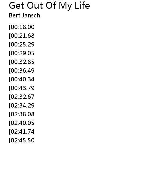 | [02:49.72][02:32.67][01:47.58][00:47.61] | Get Out Of My Life |