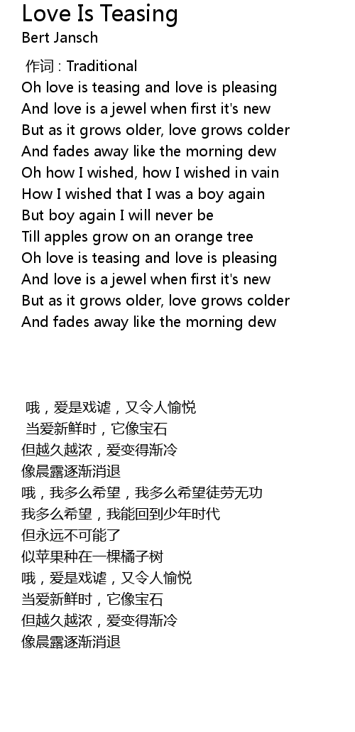 | [00:12.250] | Oh love is teasing and love is pleasing |