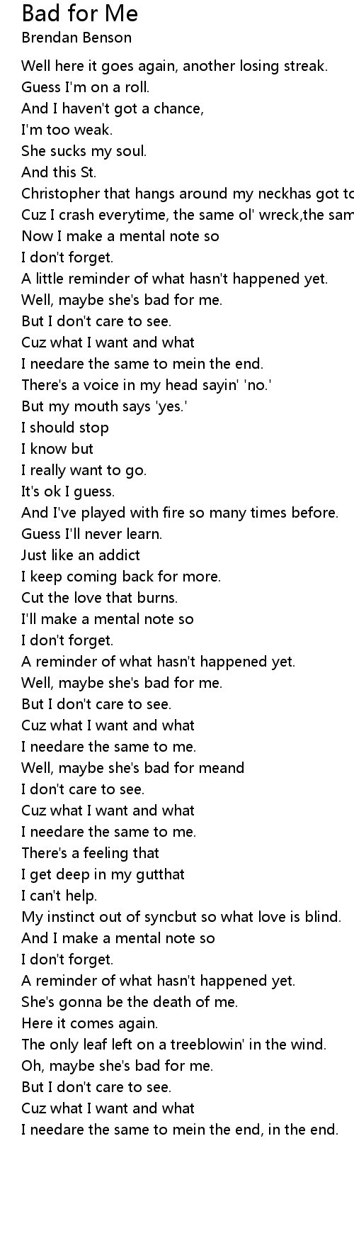 Well, maybe she's bad for meand |