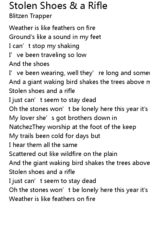 | Song | Stolen Shoes & a Rifle |