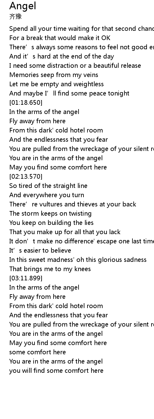 | [01:19.410] | In the arms of the angel |
