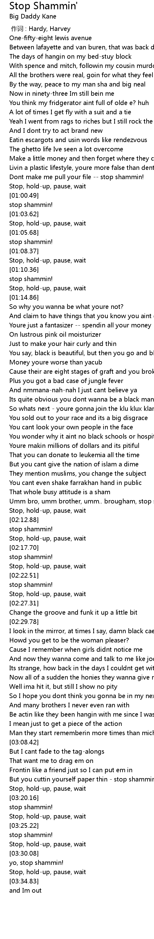 | [03:16.47] | But you cuttin yourself paper thin - stop shammin! |