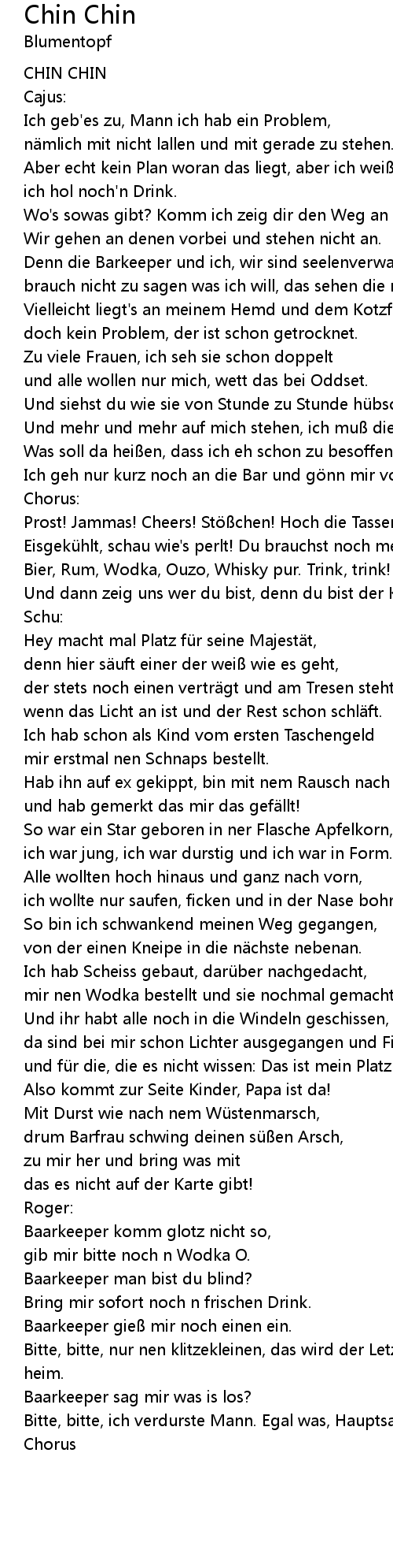 | Aber echt kein Plan woran das liegt, aber ich wei schon wie ich drauf komm, ich hol noch' n Drink. | |