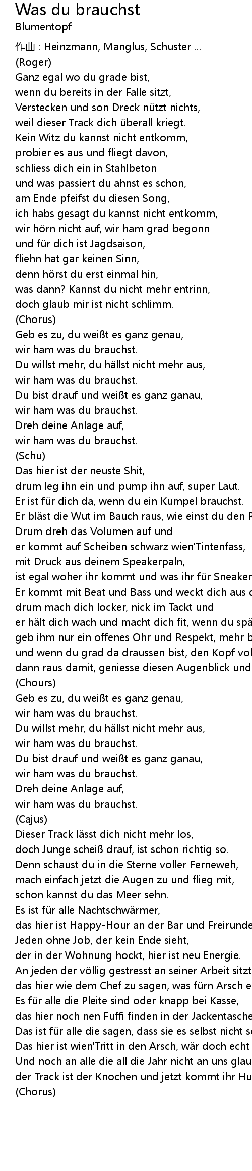 | Song | Was du brauchst |