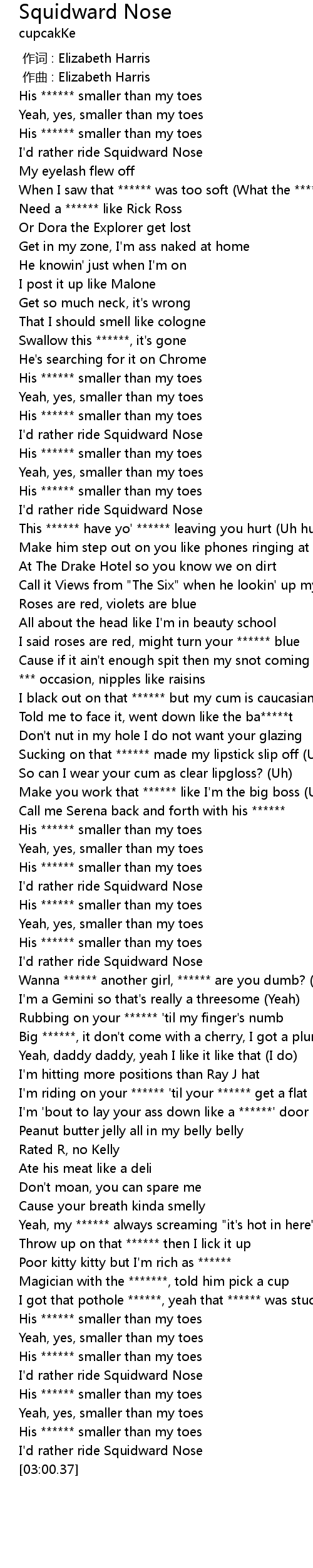 | [00:57.54] | I'd rather ride Squidward Nose |