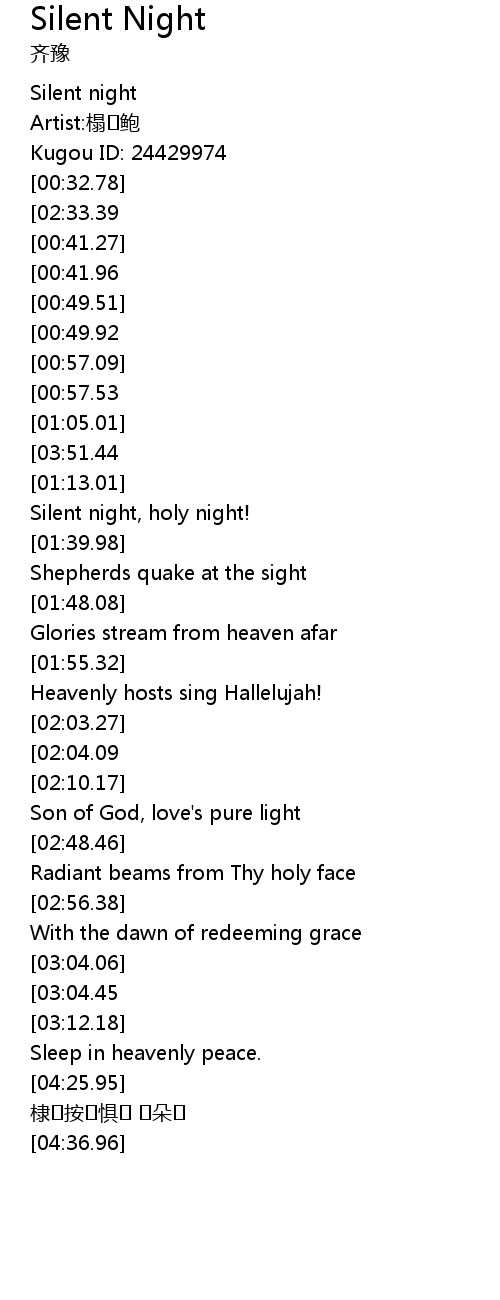 | [03:20.19][02:33.39][00:34.04] | Silent night, holy night |