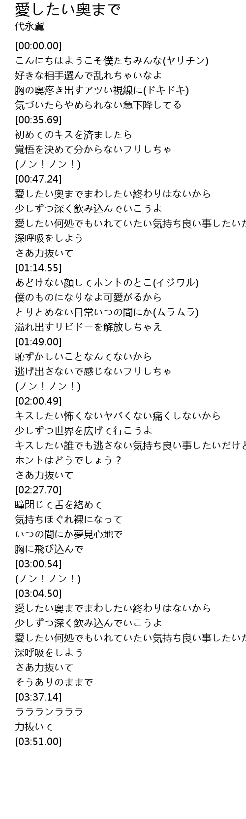 | [03:15.69] | 愛したい何処でもいれていたい気持ち良い事したいだから |