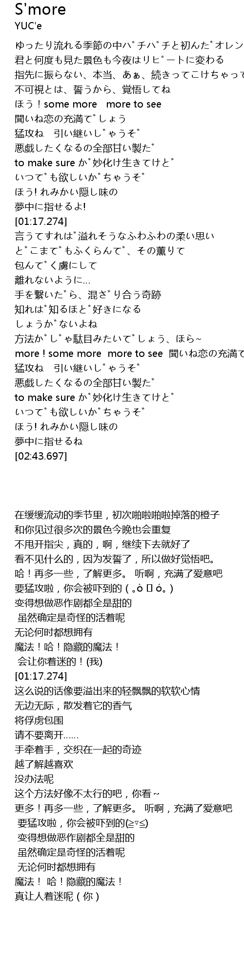 | [02:09.901] | more ! some more more to see 聞いね恋の充満でしょう |