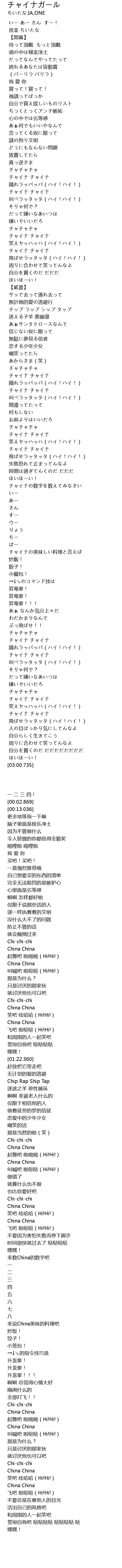 | [01:01.213] | チャイナ チャイナ |
