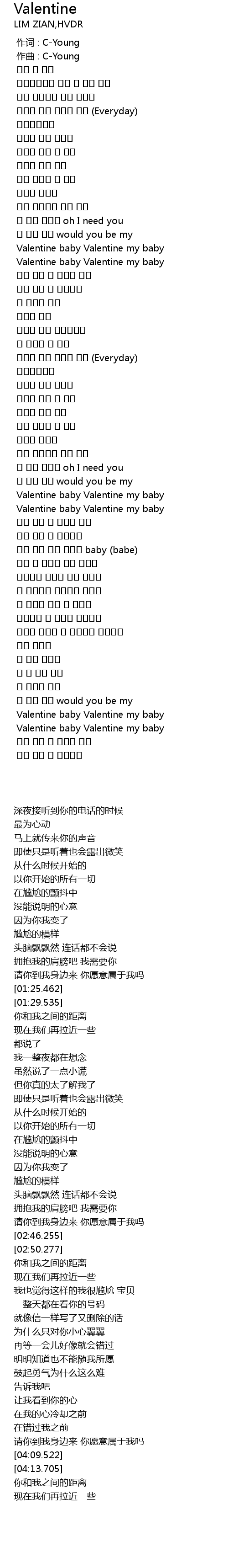 | [02:46.255] | Valentine baby Valentine my baby |