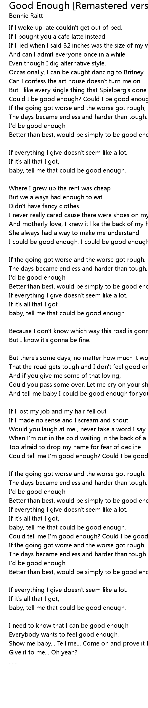 Could tell me I'm good enough? Could I be good enough? |