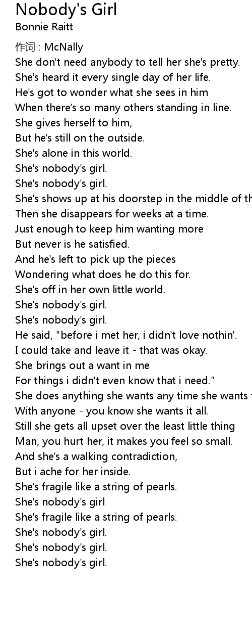 | She' s nobody' s girl. | |