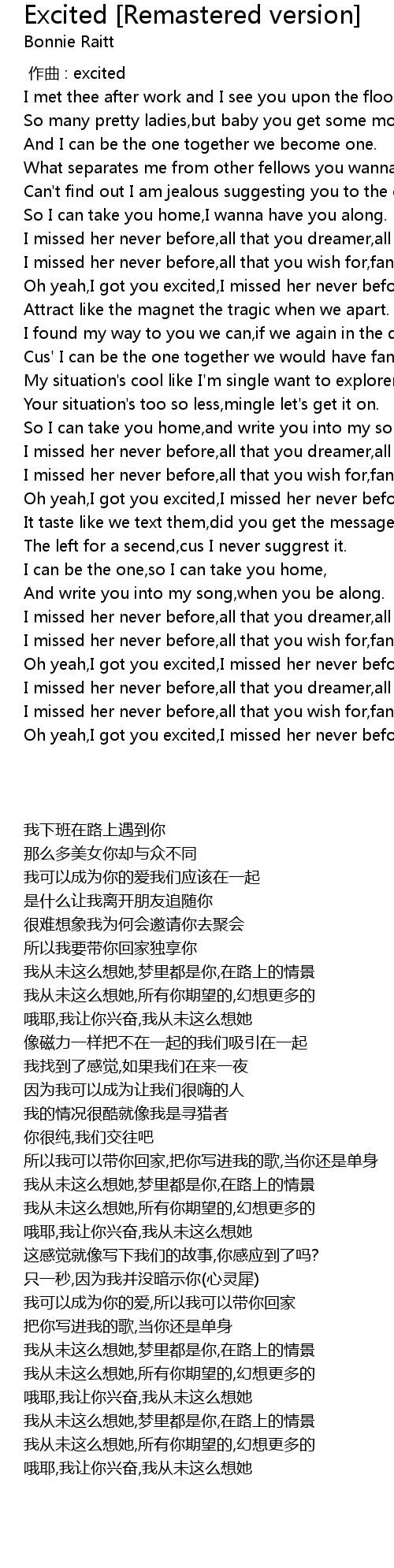| [01:51.270] | Oh yeah,I got you excited,I missed her never before. |