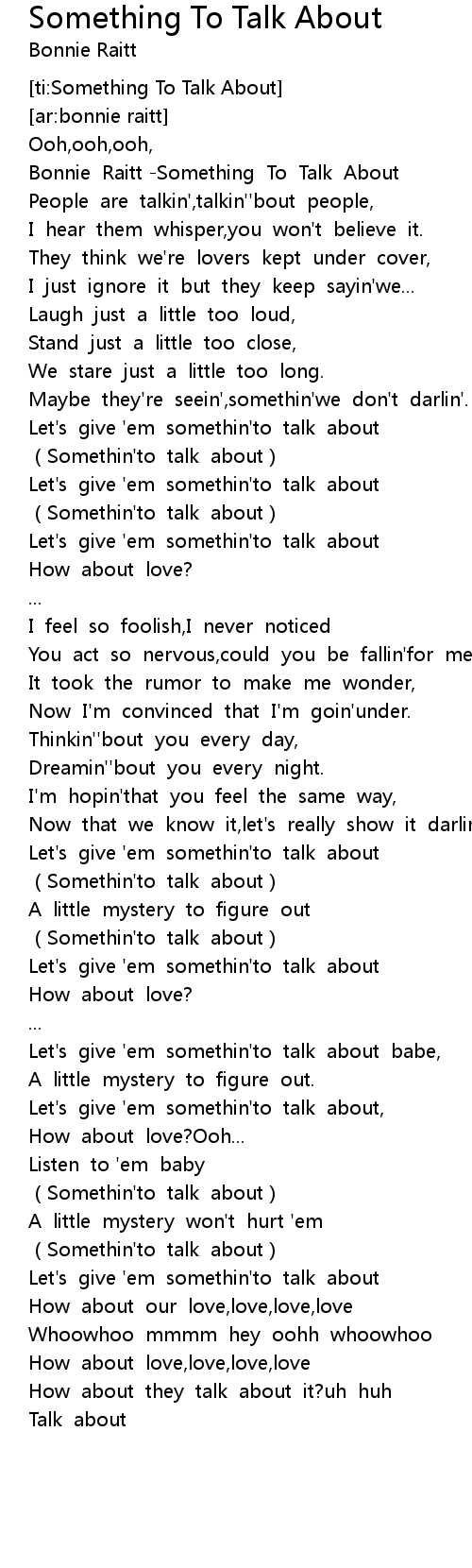 | [00:13.51] | Bonnie Raitt -Something To Talk About |