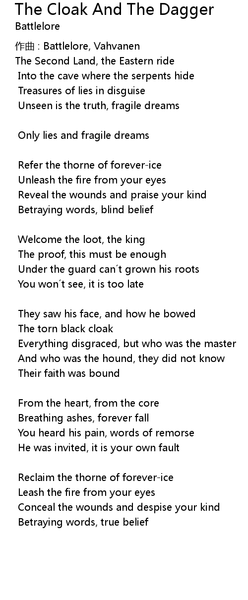 | Song | The Cloak And The Dagger |