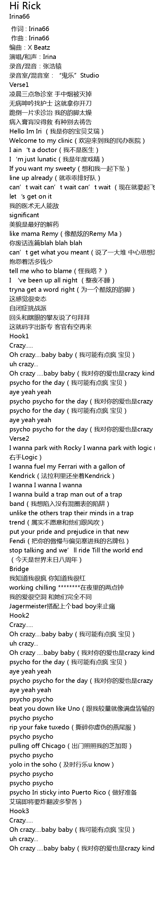 | [01:42.422] | I wanna park with Rocky I wanna park with logic zuo shou ASAP Rocky you shou Logic |