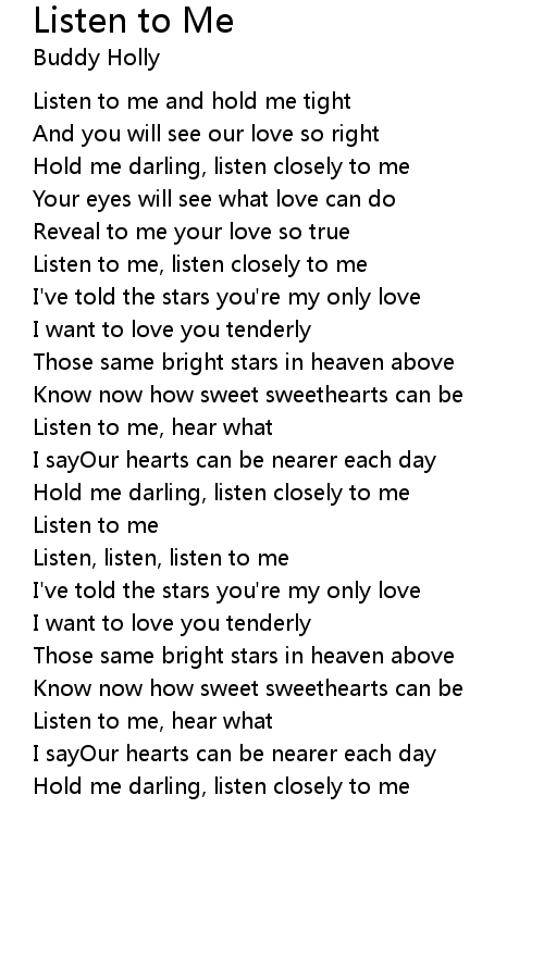 Listen to me and hold me tight |