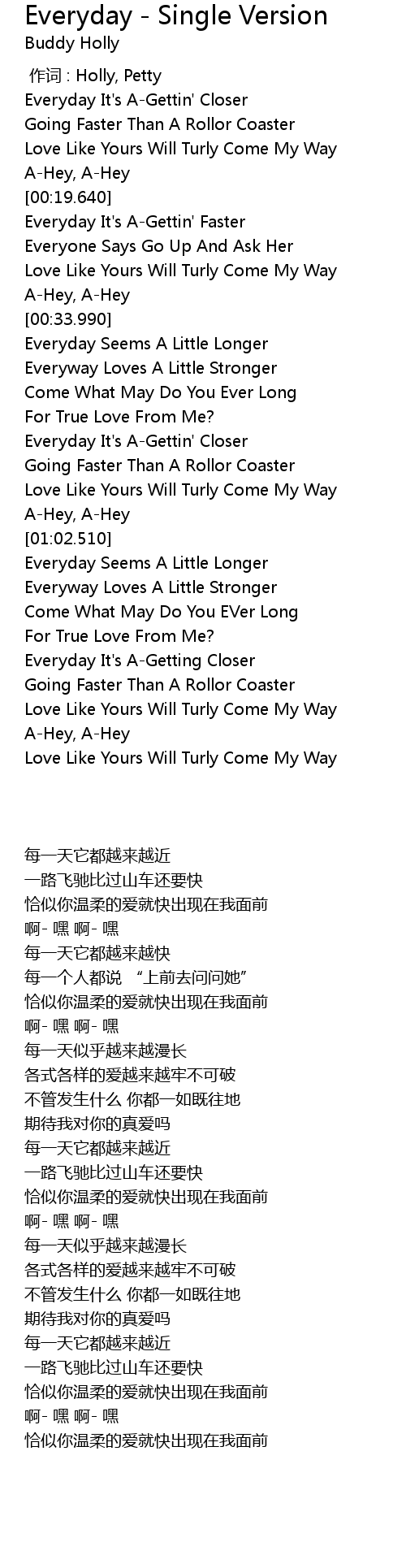 | [00:00.00] | zuo ci : Holly, Petty |