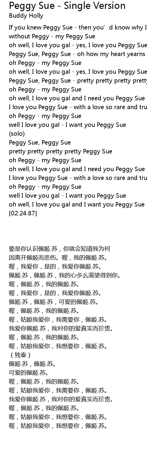 | [01:43.57] | Peggy Sue, Peggy Sue |