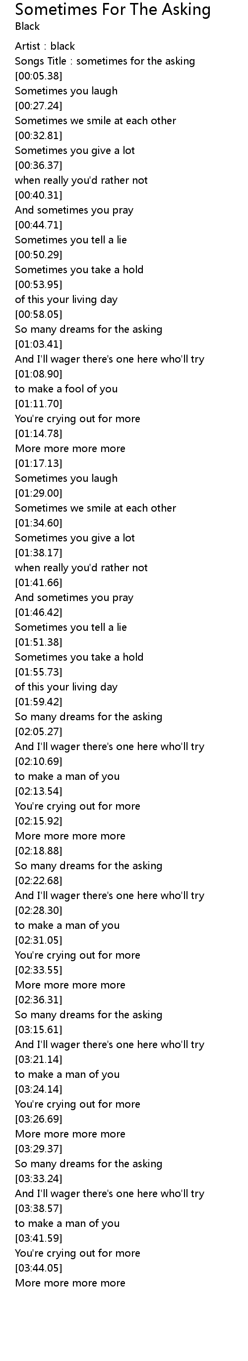 | [00:03.47] | Songs Title: sometimes for the asking |
