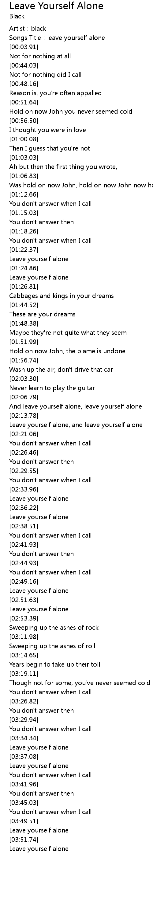| [03:37.59] | Leave yourself alone |