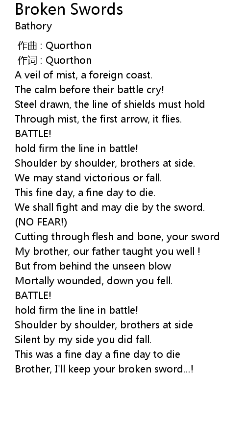 | [02:21.700] | Shoulder by shoulder, brothers at side. |