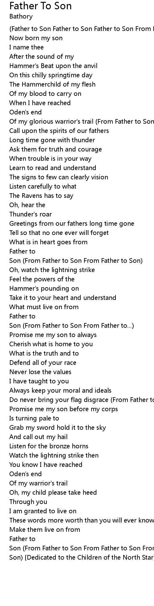 (Father to Son Father to Son Father to Son From Father to Son) |