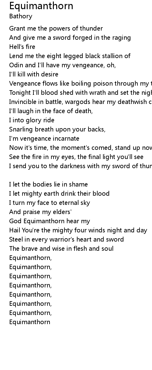 God Equimanthorn hear my |