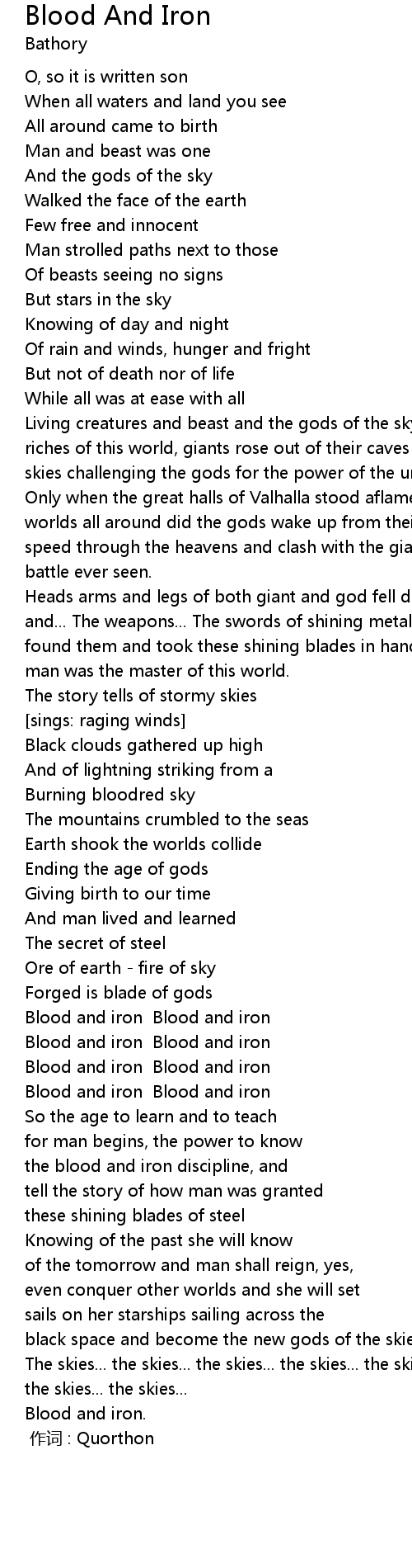 | [00:00.00] | 作词 : Quorthon |