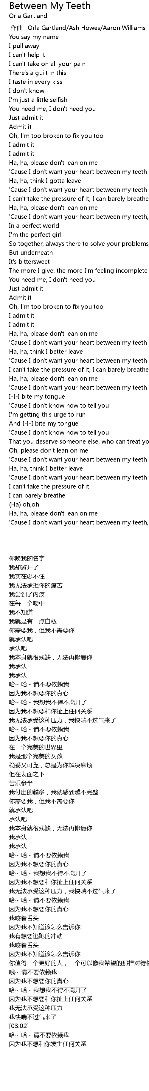 | [02:43.695] | 'Cause I don't want your heart between my teeth |