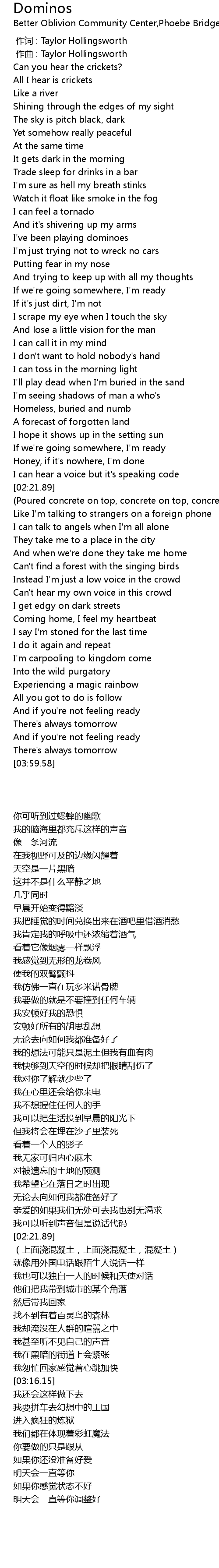 | [00:00.000] | 作词 : Taylor Hollingsworth |