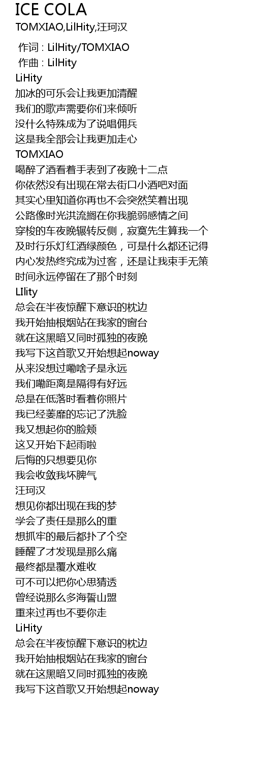 | [00:00.000] | 作词 : LilHity/TOMXIAO |
