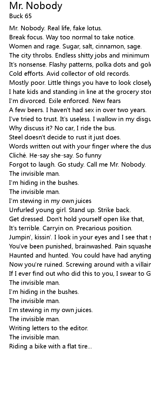| Forgot to laugh. Go study. Call me Mr. Nobody. | |