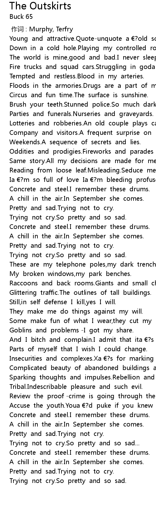| [00:38.702] | Floods in the armories.Drugs are a part of me. |