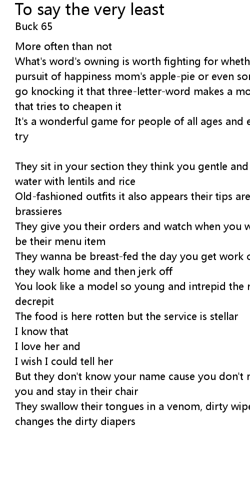 | That's good morning and good bye [Buck 65] | |
