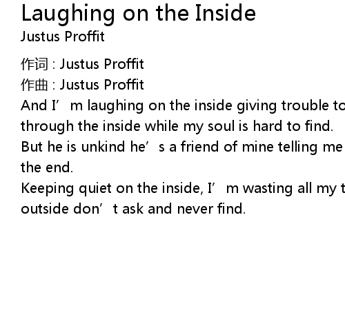 | And I’m laughing on the inside giving trouble to my mind, Digging deeper through the inside while my soul is hard to find. | |