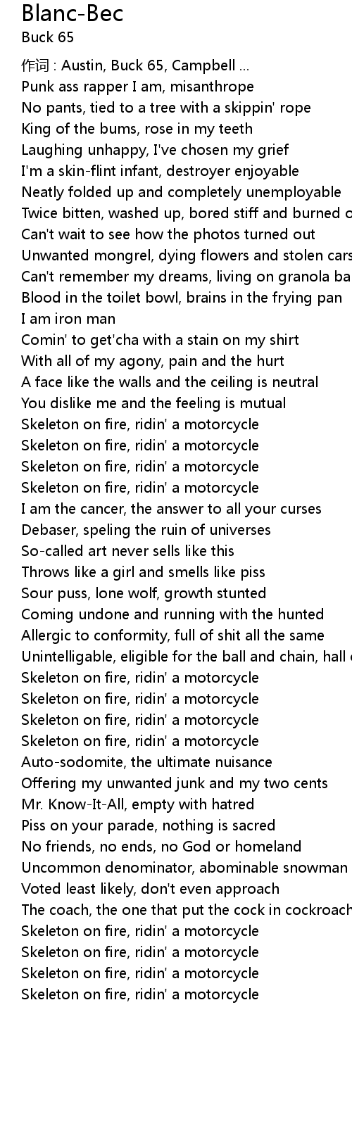 | 作词 : Austin, Buck 65, Campbell ... | |