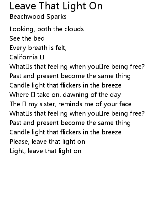 | Light, leave that light on. |