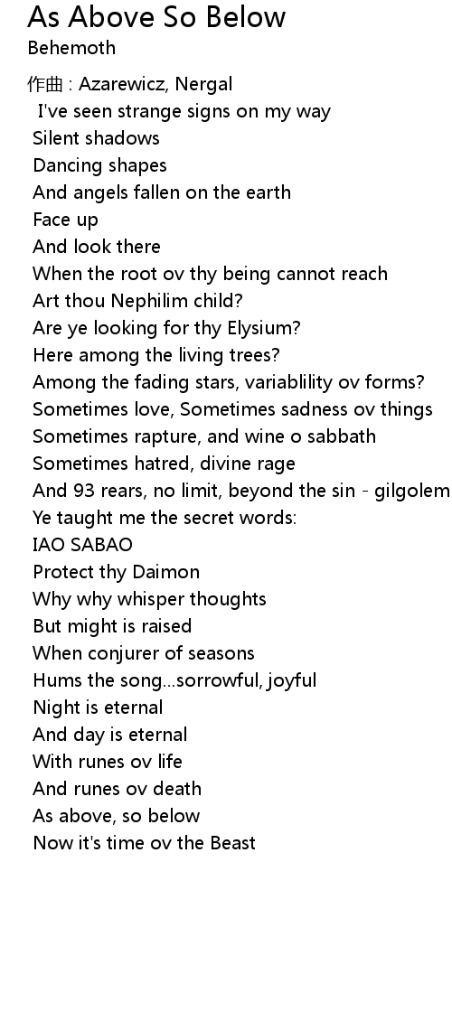 | Song | As Above So Below |