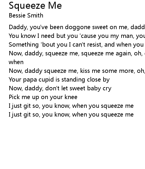 Now, daddy, squeeze me, squeeze me again, oh, daddy don't stop till I tell you when |