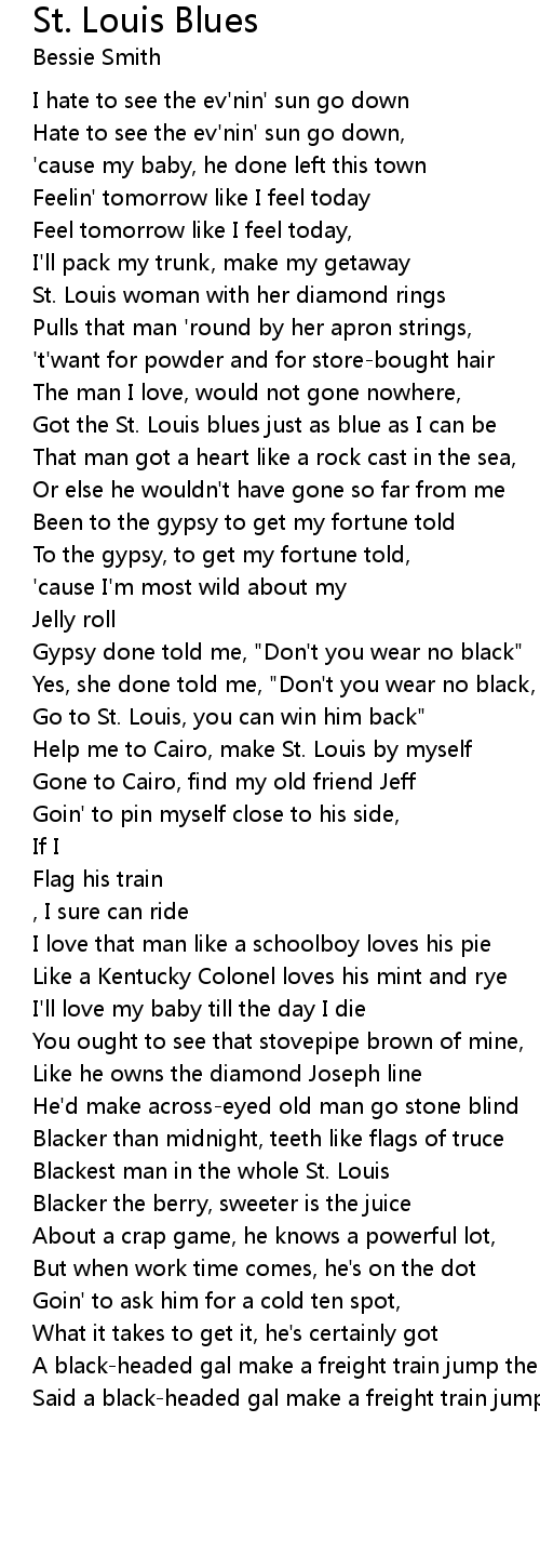 Got the St. Louis blues just as blue as I can be |