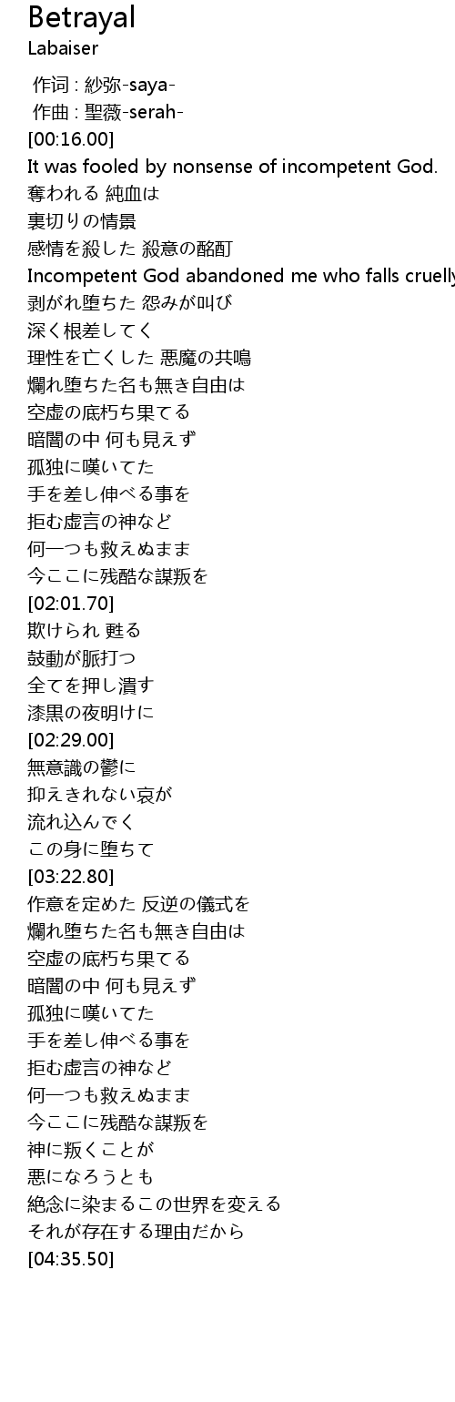 | [00:58.70] | Incompetent God abandoned me who falls cruelly. |